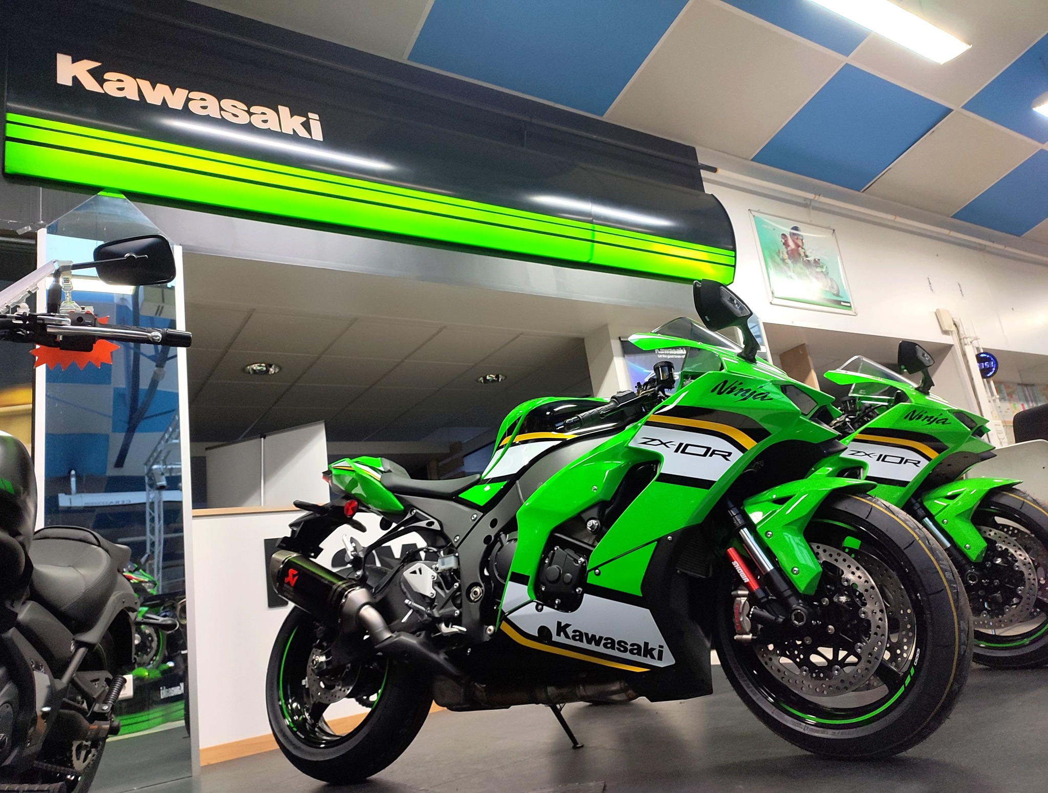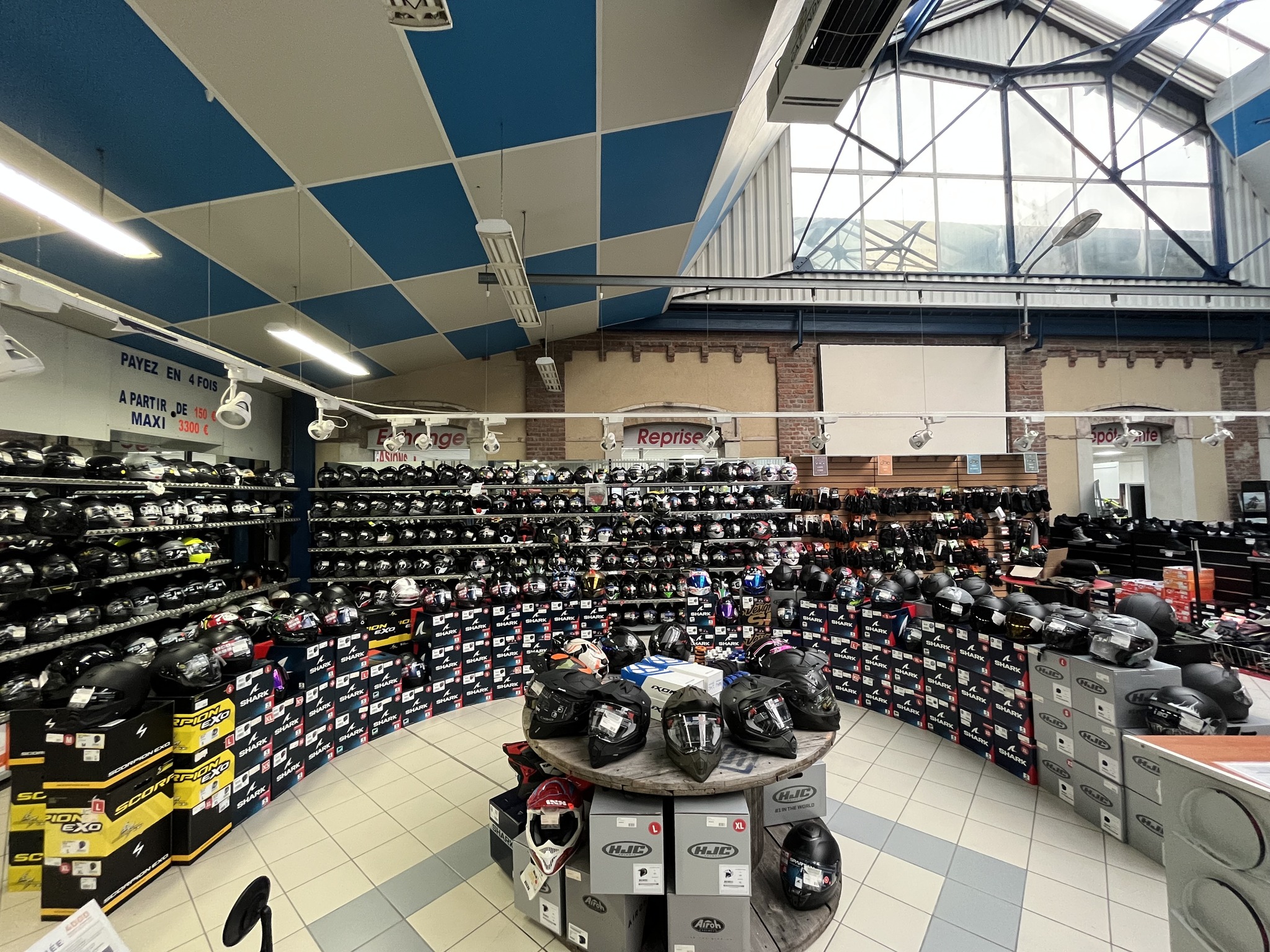 Showrooms véhicules neufs, accessoires et parc motos d'occasions.